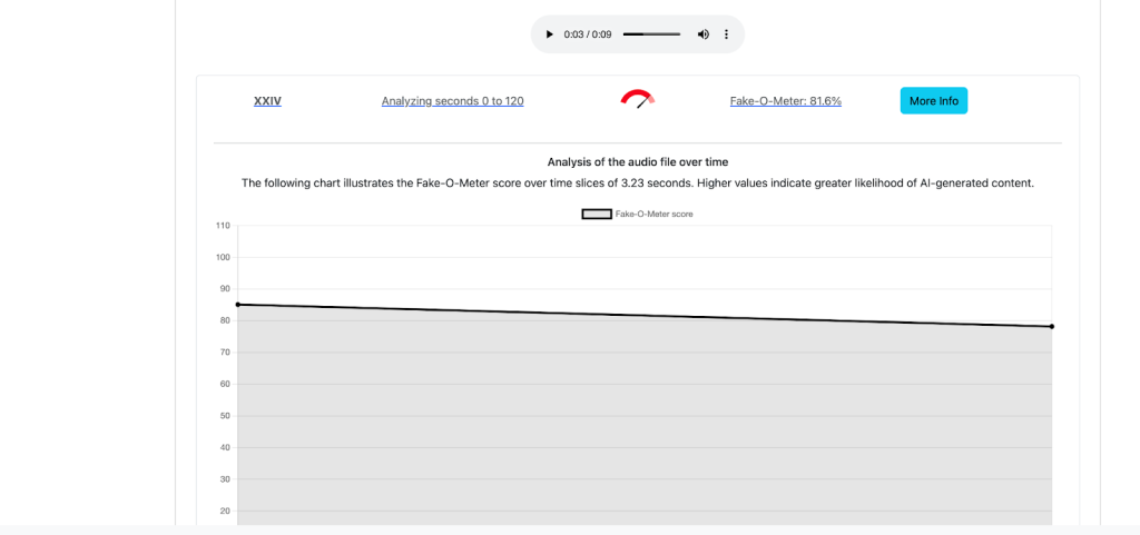 Перевірка звукової доріжки в сервісі DeepFake Total підтвердила: вірогідно, звук для відео створили за допомогою нейромереж.