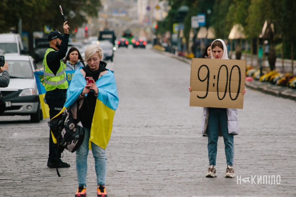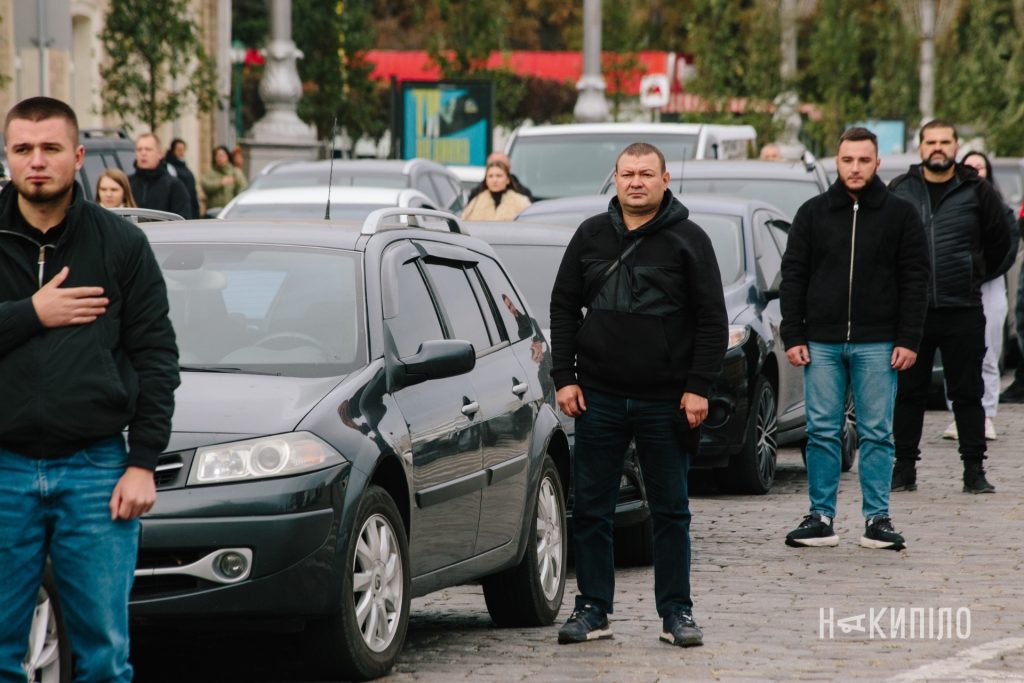 Сьогодні вранці люди зібралися на перехресті вул. Сумської та вул. Свободи, щоб взяти участь у персоналізованій хвилині мовчання «Стою за…», яку організувала ГО «Вшануй».