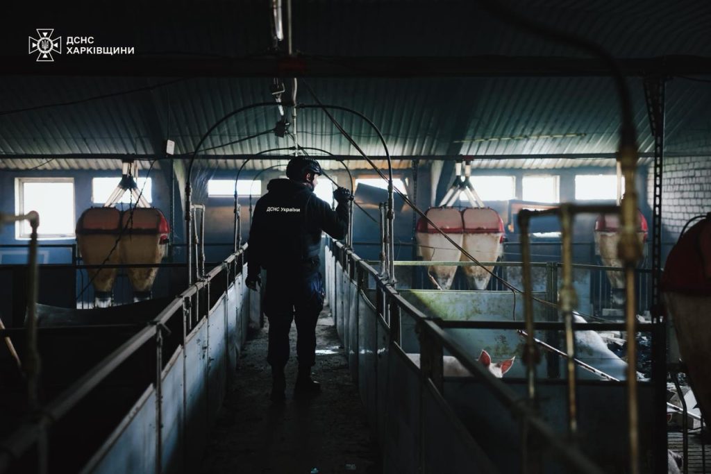 На місці виникла масштабна пожежа: горіли 8 будівель для утримання свиней на загальній площі 13,6 тис. кв. м. До ліквідації наслідків обстрілів залучалися 32 рятувальники та 9 одиниць техніки ДСНС, зокрема піротехніки та офіцер-рятувальник громади.