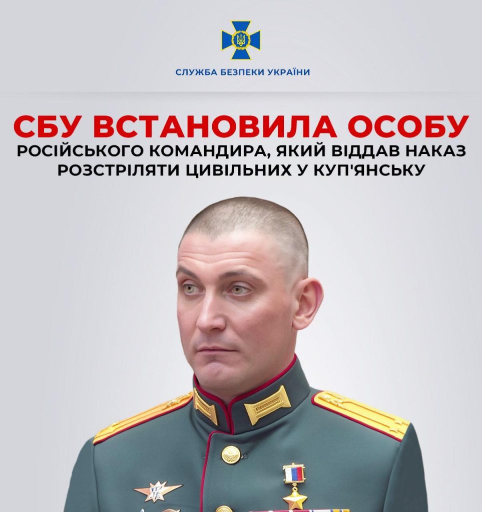 СБУ встановила особу одного з цих російських злочинців — громадянина рф Андрія Сиротюка, командира 121-го полку 68-ї мотострілецької дивізії 6-ї загальновійськової армії росії.