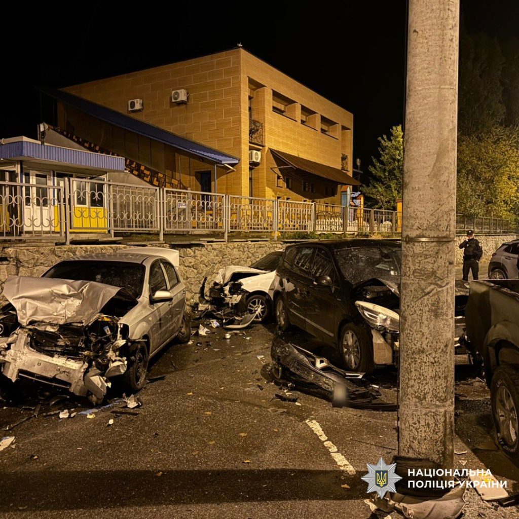11 жовтня о дев’яті вечора в Київському районі Харкова 47-річний водій автомобіля Mitsubishi не впорався з керуванням. Він пролетів через зустрічну смугу за межі автодороги, та з силою врізався в припарковані на майданчику автомобілі. Удар був такої сили, що припарковане авто винесло на смугу і внього врізався Renault Simbol під керуванням іншого водія, зазначають у поліції Харківської області.