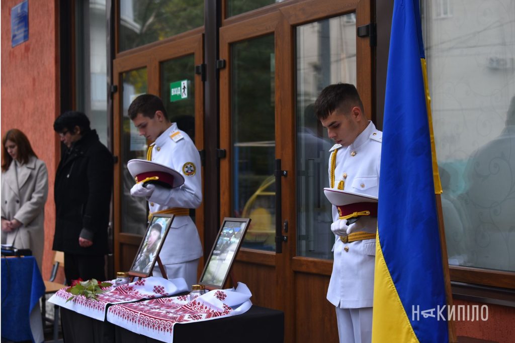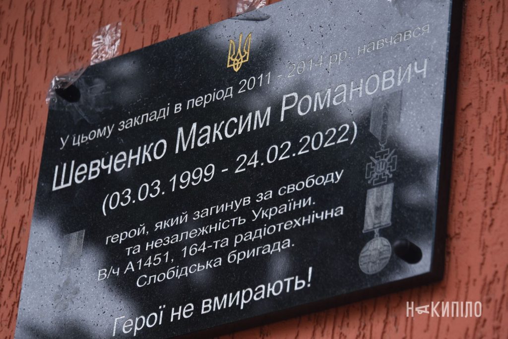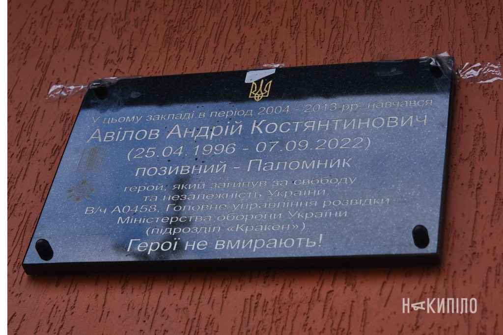 16 жовтня на стіні Харківського ліцею №1 встановили меморіальні дошки двом загиблим воїнам: Андрію Авілову («Паломнику») і Максиму Шевченку. Обидва раніше навчалися тут. Ушанувати пам’ять захисників прийшли рідні, побратими, друзі, знайомі.